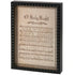 An inset box sign displaying a matte black color frame and inset design of vintage sheet music for "O Holy Night." Natural wood frame features a molded resin trim for added interest. Our O Holy Night inset box sign is easy to hang or can free-stand alone. A vintage seasonal home accent that can be easily displayed in any home or work space.