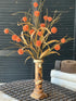 A sophisticated arrangement featuring thistle-inspired spherical formations complemented by diminutive bubble-like berries. The composition is enhanced with fine grassy foliage and elegantly diverging stems, creating a balanced botanical display with architectural interest.