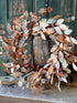 Expertly crafted with diverse foliage displaying an array of autumnal hues and tactile variations, the September Shadows Wreath elegantly heralds the transition to fall season with sophisticated botanical artistry.