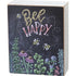 A wooden chalk art box sign featuring a "Bee Happy" sentiment with vibrant flower and bumblebee designs in matte finish for a realistic chalkboard effect.
