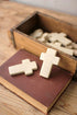 These gorgeous crosses are hand carved from soft stone by artisans in Haiti. Available in dark and light grey, these decorative pieces are are perfect for adding a delicate filler to your empty platters or bowls.