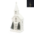 This Lighted Church decoration features a warm, inviting glow that brings a serene ambiance to holiday displays or year-round decor. Accompanied by two detailed trees, it creates a peaceful, festive scene perfect for mantels, tabletops, or village sets. The precise lighting enhances architectural details, adding a touch of elegance and reverence to your home environment.