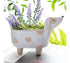 White and Tan spotted ceramic dog planter. Fill with an orb or other floral for a fun look