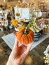 A ceramic pumpkin with a velvet exterior - how fun! These look great on shelves, in centerpieces, and are the perfect touch of texture and fall for your decor this season.