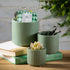 Scaling in a trio of sizes up to just under twelve inches tall, you can easily create a dramatic tabletop arrangement. Gentle curved edges lend a graceful appeal to the classic round silhouettes of these sleek planter pots.