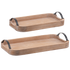 Wood Carved Rectangular Tray with black metal handles. Perfect sizes to add an accent piece to the middle of a dining room table!