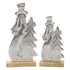 This elegant silver snowman figurine gracefully holds a detailed tree, both mounted on a natural wood stand. Crafted with attention to detail, it combines the cool shimmer of silver with the rustic warmth of wood, making it a refined decorative piece. Ideal for enhancing holiday displays or adding a sophisticated touch to winter-themed décor, this sculpture blends traditional charm with contemporary style.